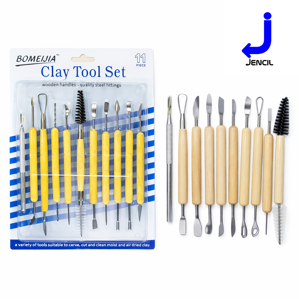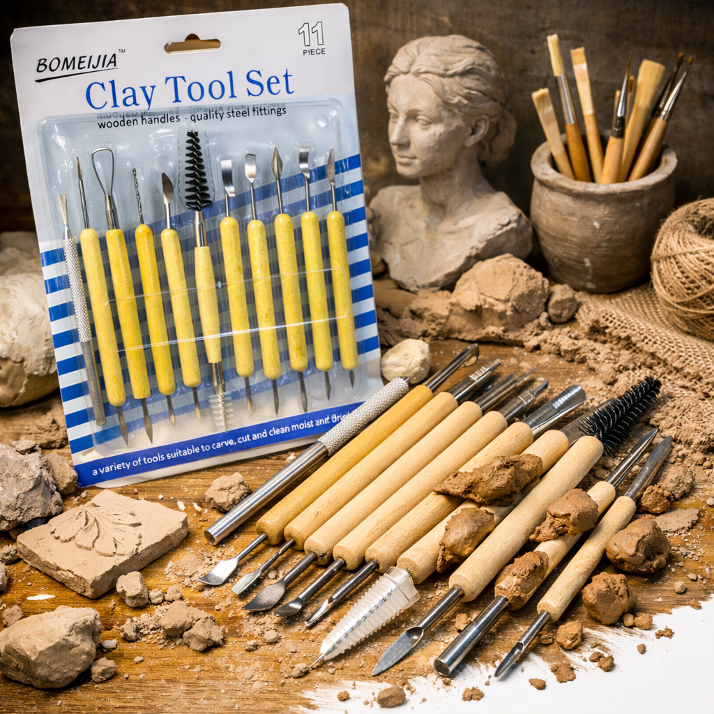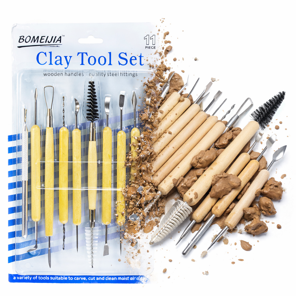 BOMEIJIA 11‑Piece Clay Tool Set – precision‑crafted wooden handles with quality steel fittings for carving, cutting, and shaping moist or air‑dried clay. Perfect for sculptors, potters, and creative artisans seeking professional control and comfort
