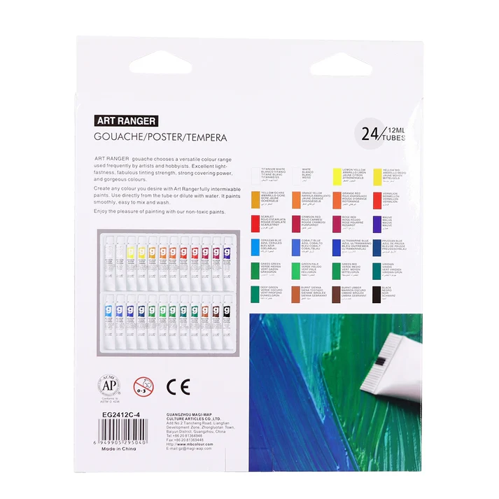 Gouache Poster Tempera Set 24 Shades x 12 ML-Art Ranger