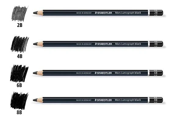 - Lead Diameter: The darker grades have a thicker lead core, with the 8B at approximately 4.5 mm and the others at around 3.6 mm, allowing for broad coverage of dark areas.